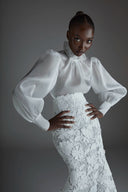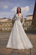 Tailoring tradition meets a contemporary vision. Each dress is designed around the bride, with lines, volumes, and cuts conceived to enhance her.