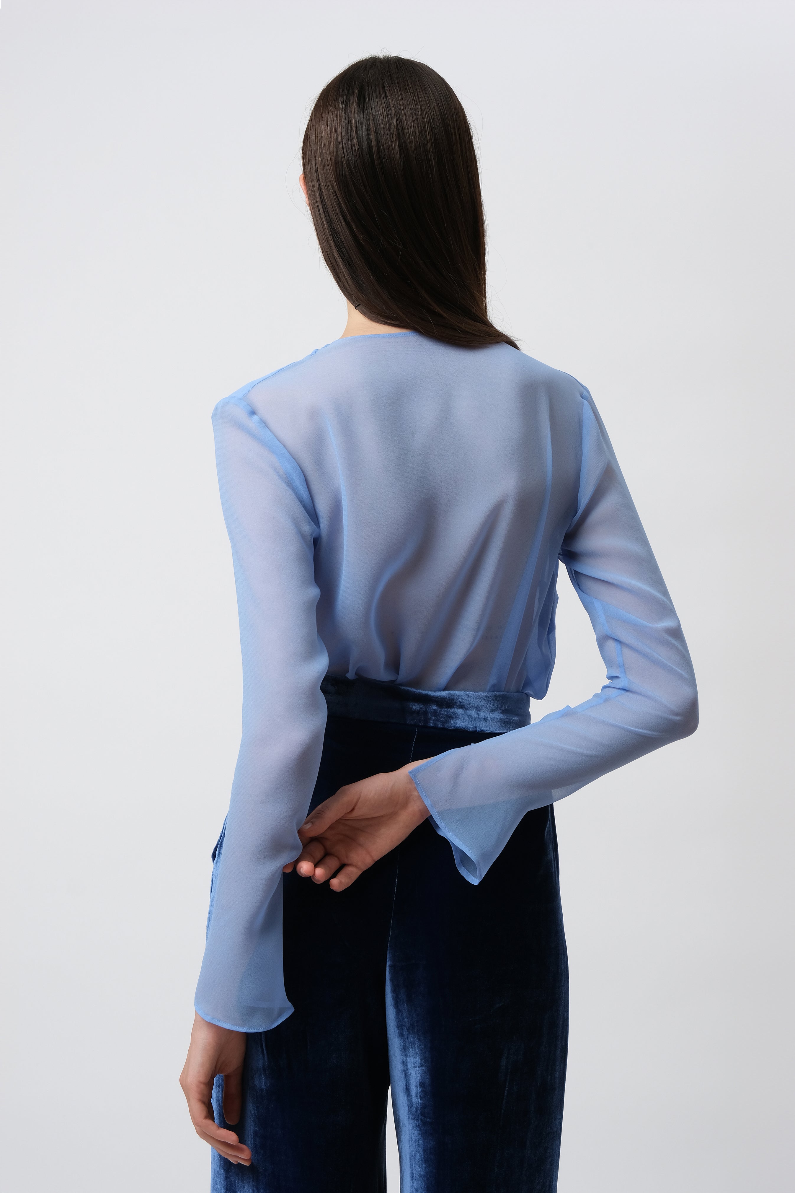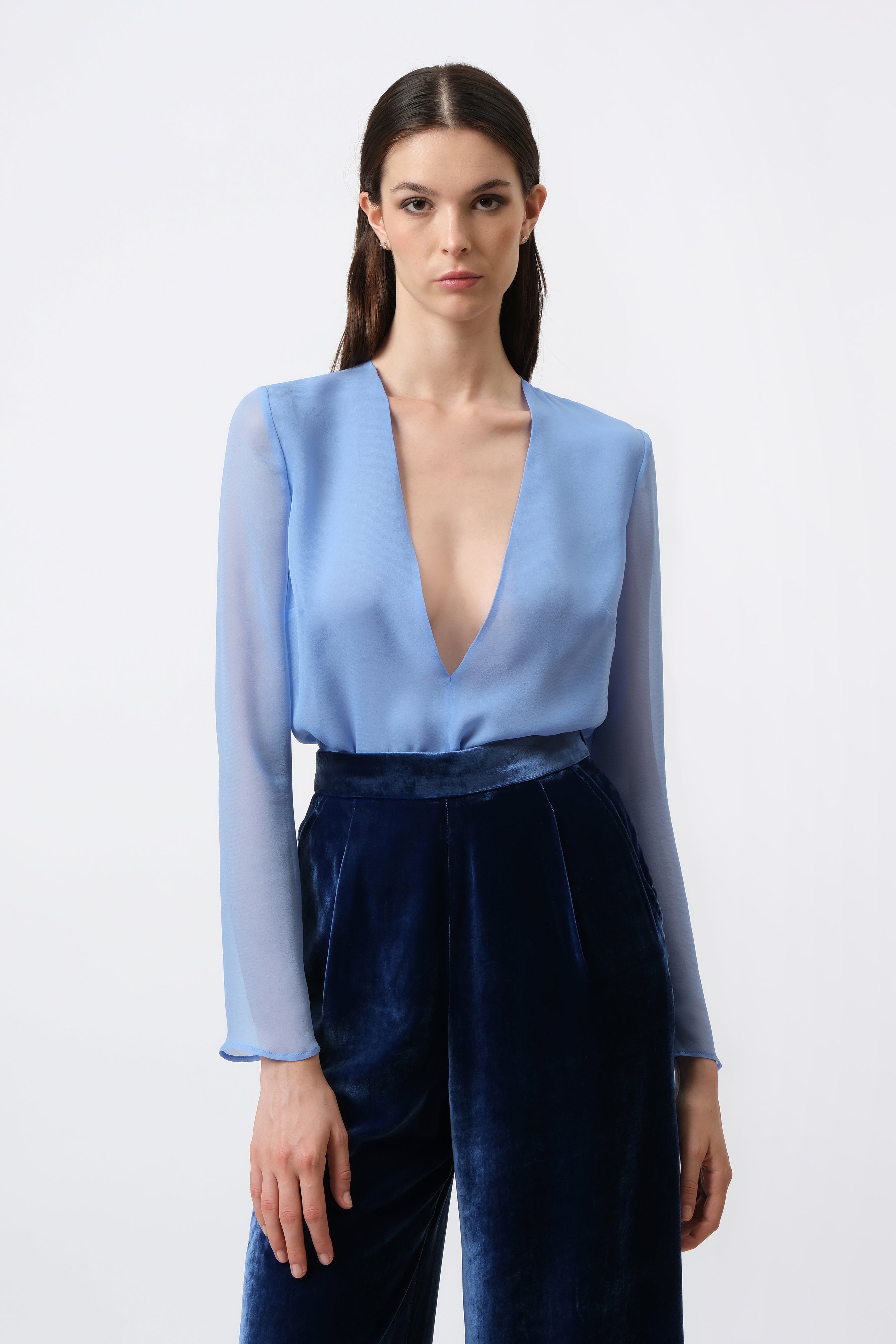 Camicetta leggera in georgette di seta azzurro.