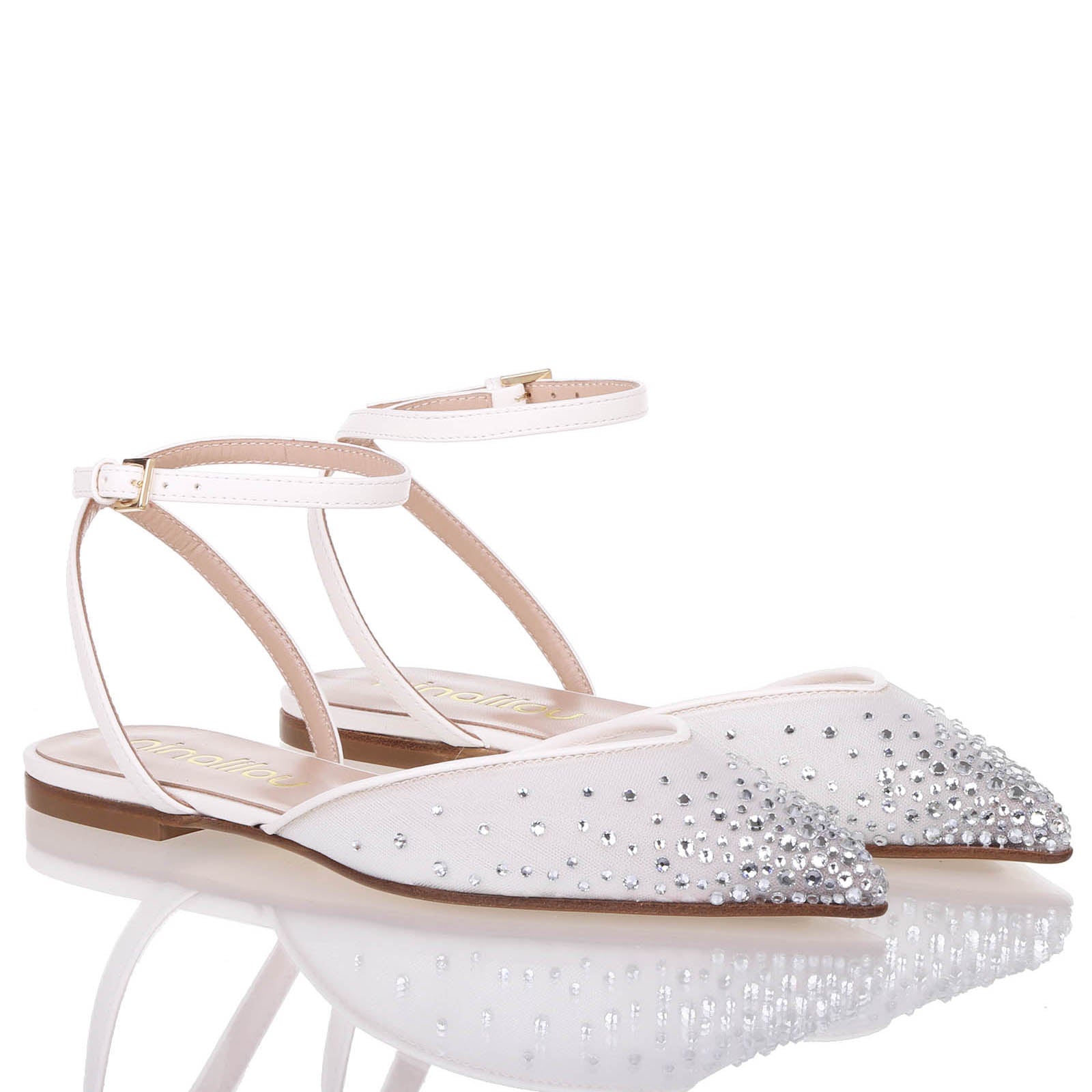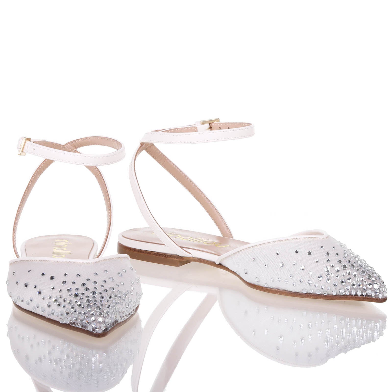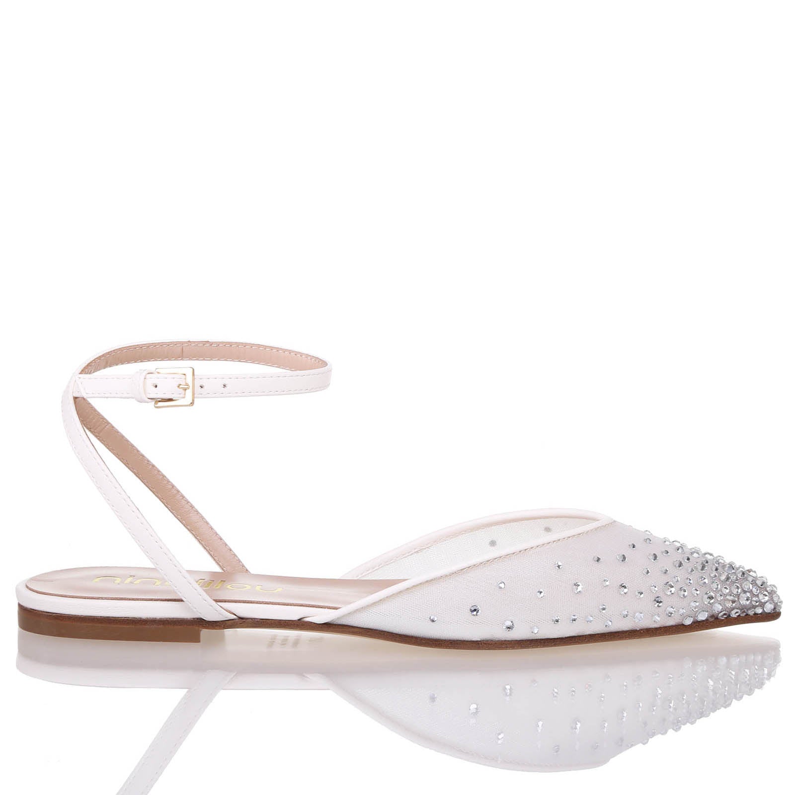 Timeless elegance for the modern bride: this Ninalilou flat shoe combines sophistication and sparkle with glittering crystals and a design that celebrates femininity with every step.