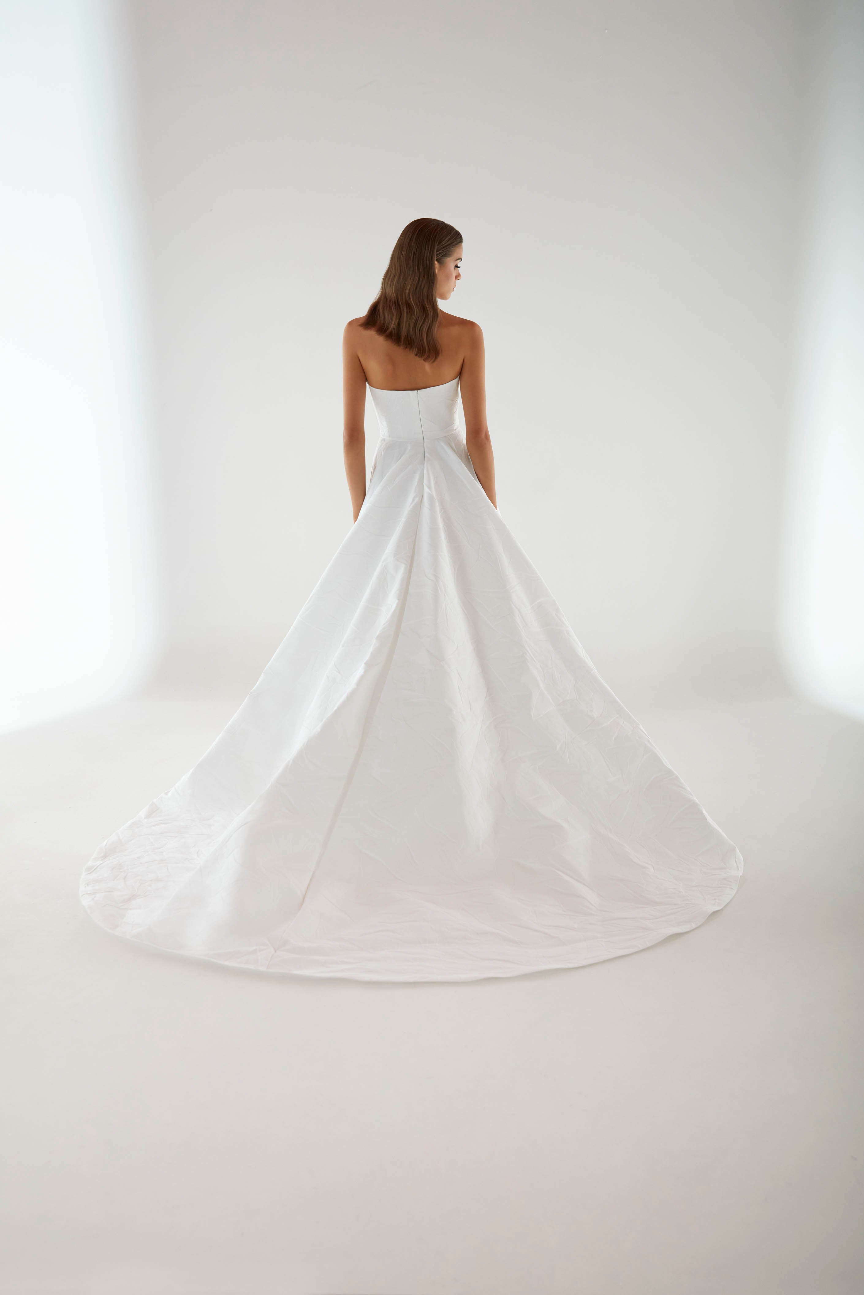 Each detail is crafted with precision to ensure an impeccable fit and natural elegance. The wedding dresses are entirely made to measure, using only noble fabrics selected to enhance the beauty of every bride.