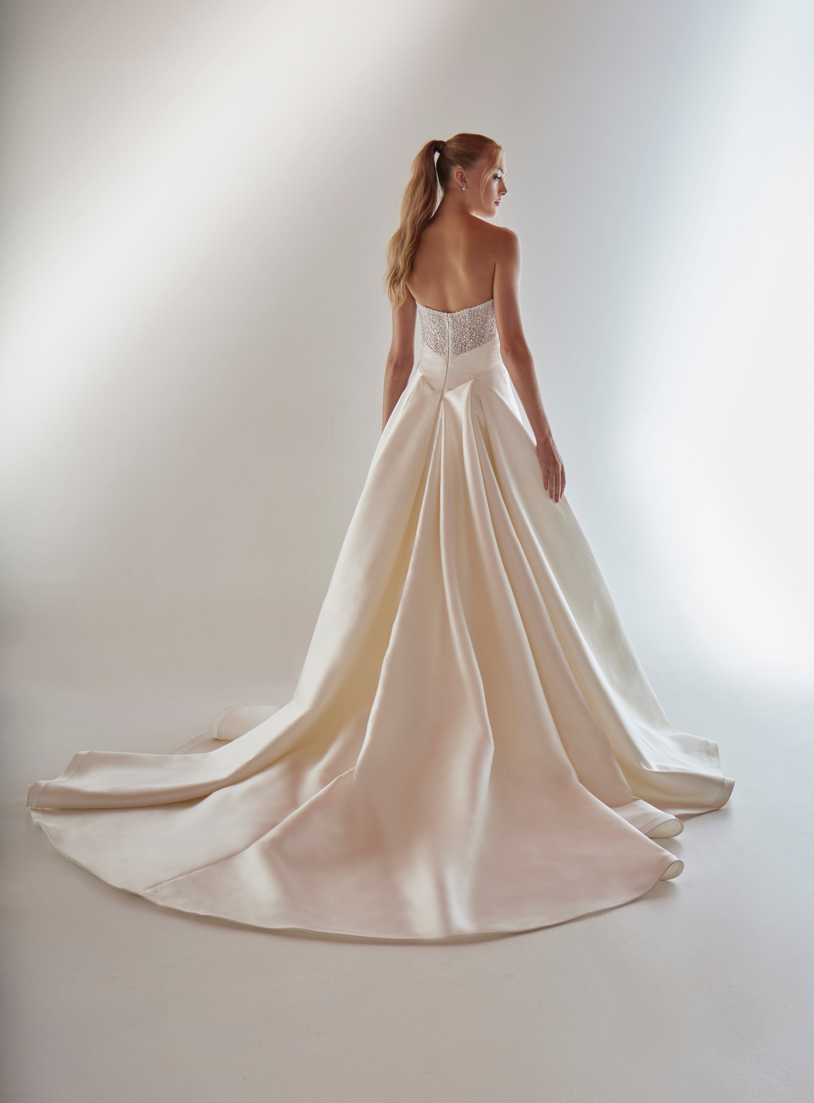 Your bridal stylist will guide you through every step: from confirming the order to any personalizations. A first fitting will be scheduled, followed by additional appointments at the Atelier based on tailoring needs. The journey concludes with the final delivery of your wedding dress, ready for your big day.